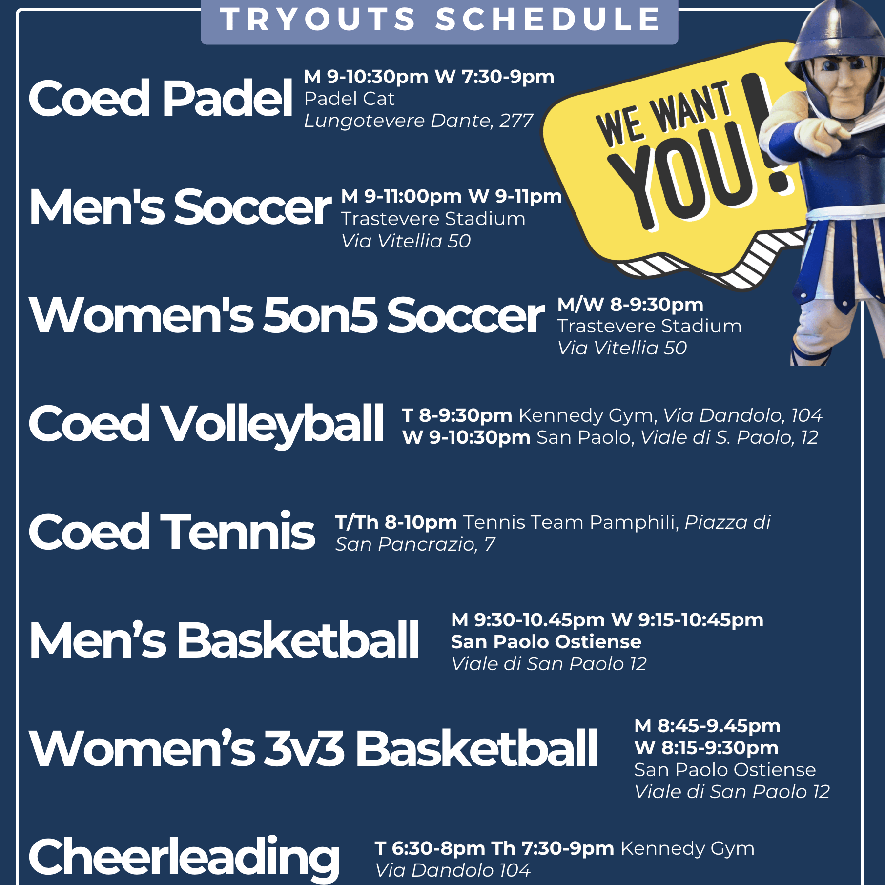Spring 2026 tryouts are open to all students (visiting, degree seeking, enlus, master students)